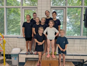 Pia Sehnem (Jg. 2013), Frida Wildförster (Jg. 2015) und Greta Wildförster (Jg. 2017) sowie David Gärtner (Jg. 2012), Lucas Kramer (Jg. 2013), Mats Haltaufderheide (Jg. 2015) und Mateo Panke (Jg. 2017) gingen für die 2. Wettkampfmannschaft über 50m, 100m bzw. 200m Strecken an den Start.